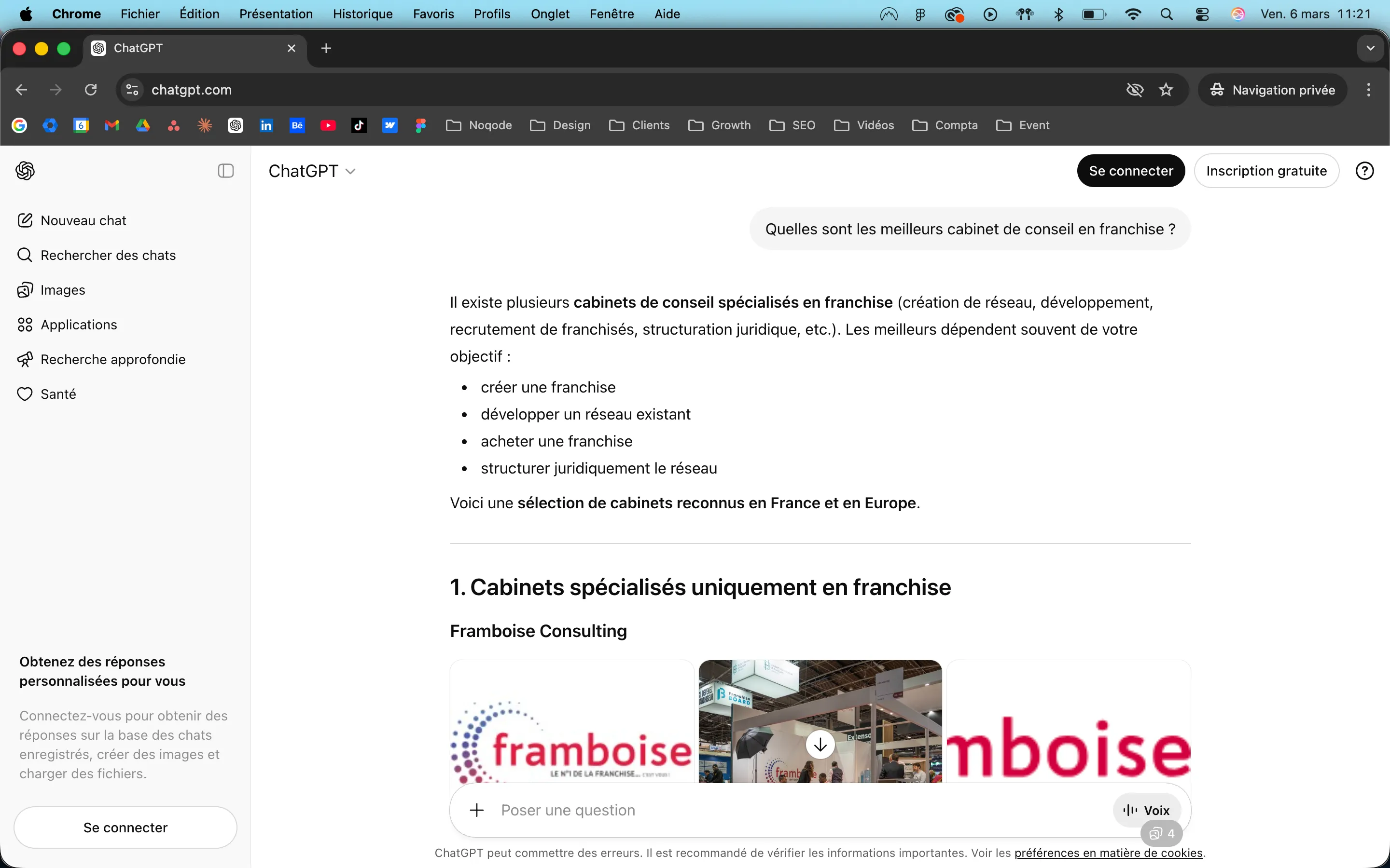 The third objective concerned the SEO and AEO with a clear ambition: to establish Framboise as a reference for highly competitive requests in the sector (“create a franchise”, “become a franchisor”, “franchise feasibility audit”, “concept modeling”, “concept modeling”, “franchisee recruitment”). The challenge went beyond simple Google ranking to aim for strategic presence in responses generated by ChatGPT, Perplexity, and Google AI Overviews.